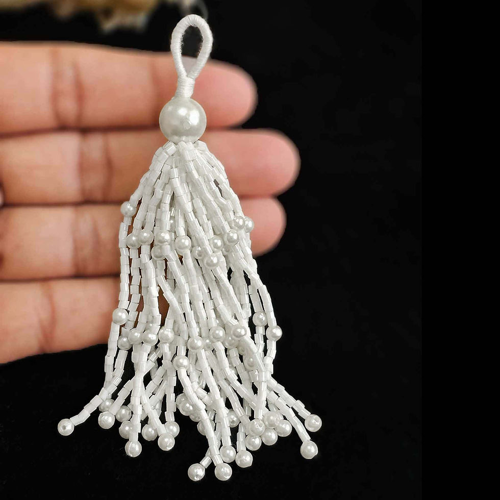 Enhance your creative projects with this long beaded tassel, featuring two beautifully attached tassels for an elegant, balanced look. Handcrafted with shimmering beads and soft flowing threads, each piece adds texture, color, and a touch of luxury to your décor or DIY creations. Perfect for home decoration, cushions, curtains, and handmade crafts.